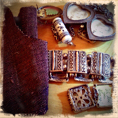 My local thrift store called 'Hidden Treasures', really does have hidden treasures. Some time ago I bought a fabric remnant, it was hardly even a quarter of a yard. I paid .25 cents. Then I noticed in their jewelry case, little plastic bags full of mismatched beads and trinkets. I picked one up for $3.